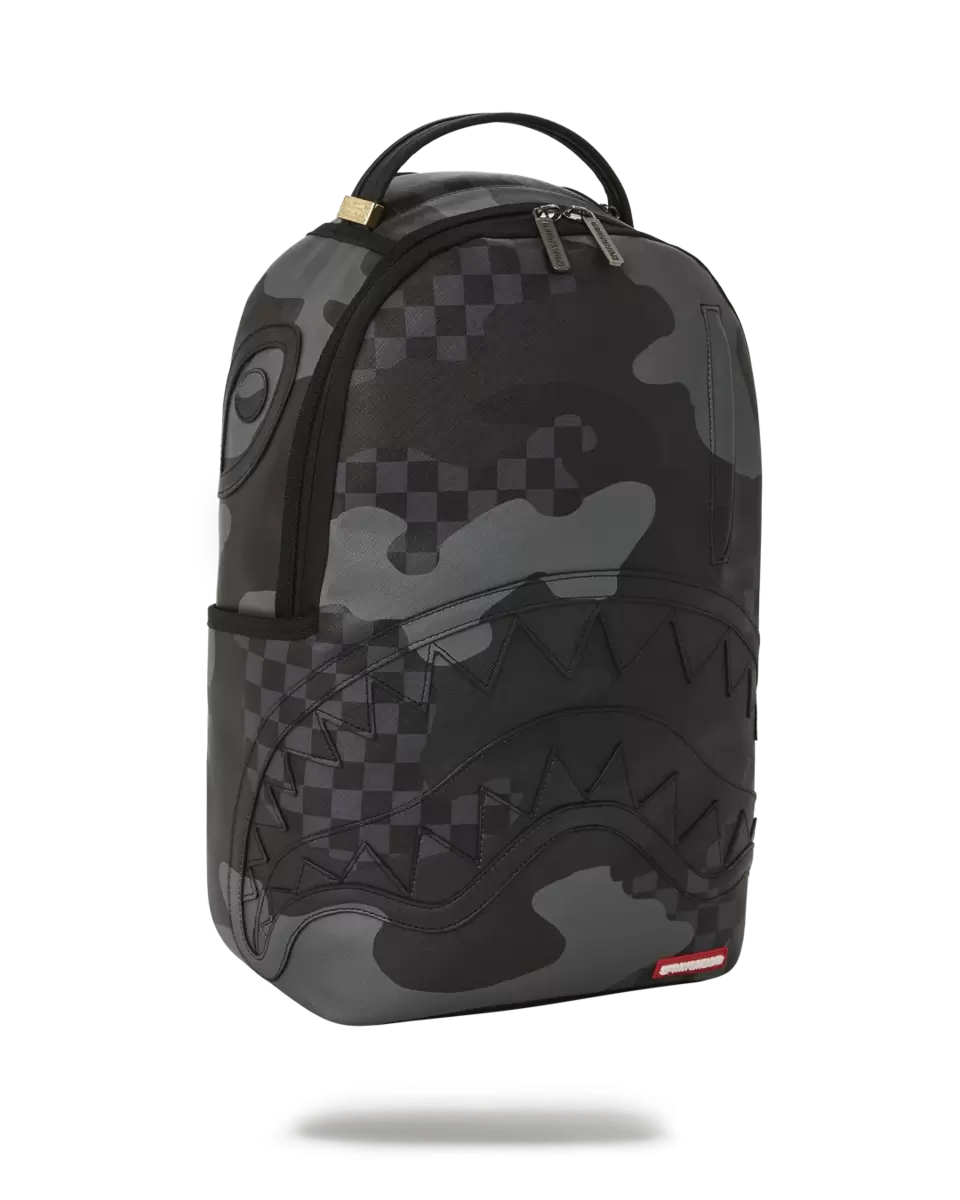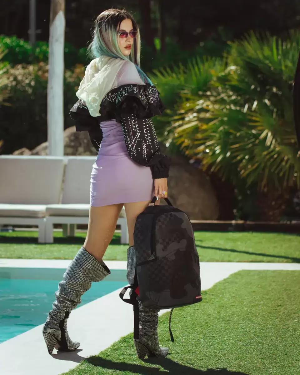Dimensions: 18″ x 6″ x 11.5″ Front zipper pocket Side pockets Zippered Stash pocket Separate velour sunglass compartment Ergonomic mesh back padding Adjustable Straps for custom sizing Gold zippers with metal hardware Metal “Sprayground Authentic” badge Slide through back sleeve connects to carry-on luggage to free your hands