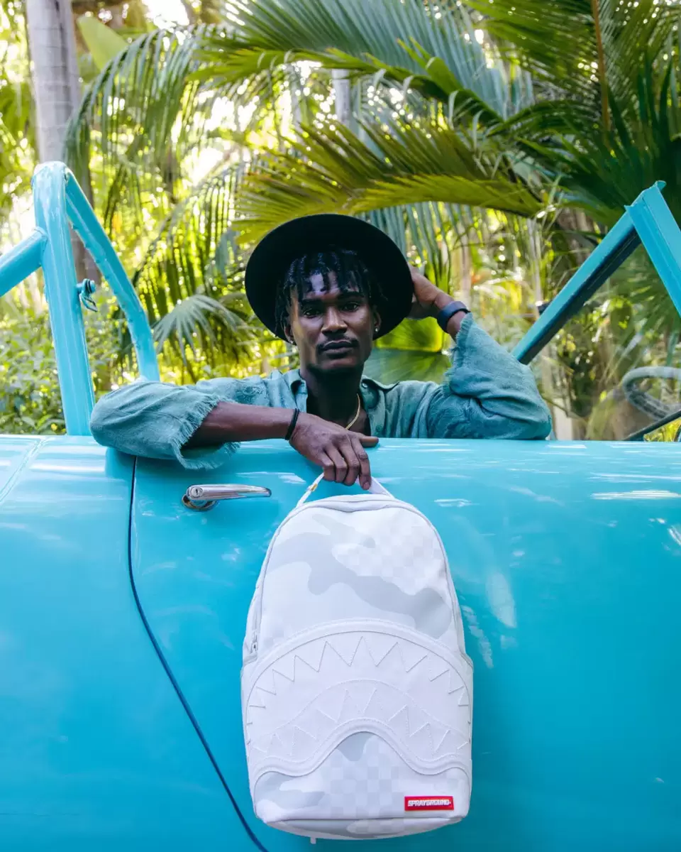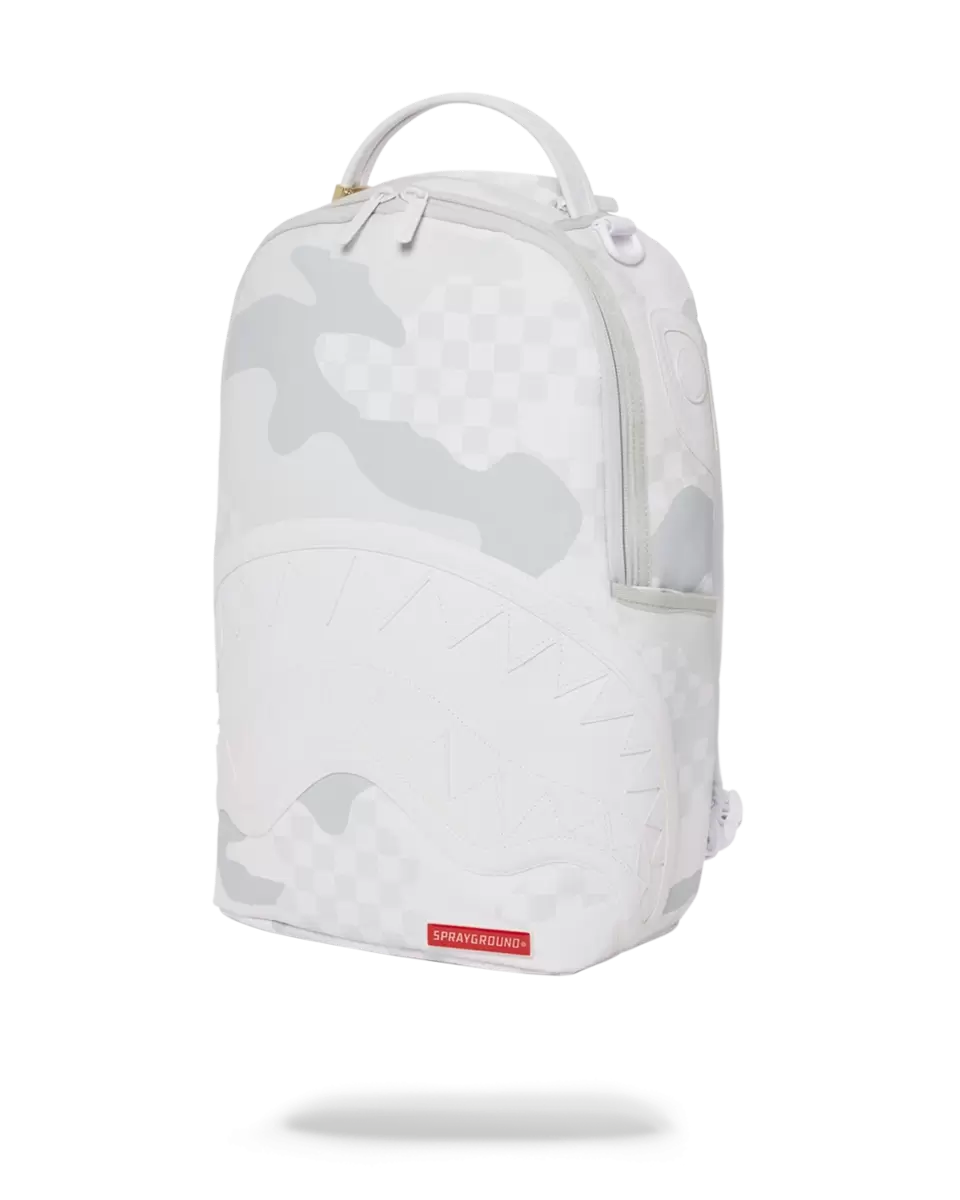Dimensions: 18″ x 6″ x 11.5″ Front zipper pocket Side pockets Zippered Stash pocket Separate velour sunglass compartment Ergonomic mesh back padding Adjustable Straps for custom sizing Gold zippers with metal hardware Metal “Sprayground Authentic” badge Slide through back sleeve connects to carry-on luggage to free your hands