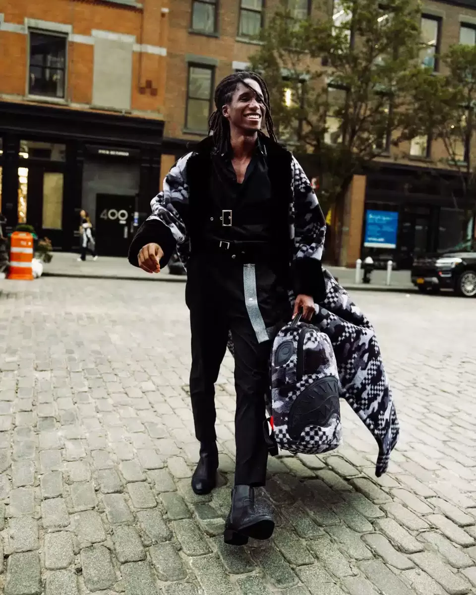 Dimensions: 18″ x 6″ x 11.5″ Front zipper pocket Side pockets Zippered Stash pocket Separate velour sunglass compartment Ergonomic mesh back padding Adjustable Straps for custom sizing Gold zippers with metal hardware Metal “Sprayground Authentic” badge Slide through back sleeve connects to carry-on luggage to free your hands