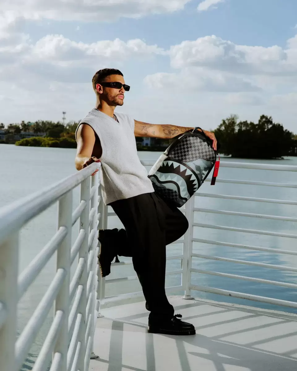 Dimensions: 18″ x 6″ x 11.5″ Front zipper pocket Side pockets Zippered Stash pocket Separate velour sunglass compartment Ergonomic mesh back padding Adjustable Straps for custom sizing Gold zippers with metal hardware Metal “Sprayground Authentic” badge Slide through back sleeve connects to carry-on luggage to free your hands