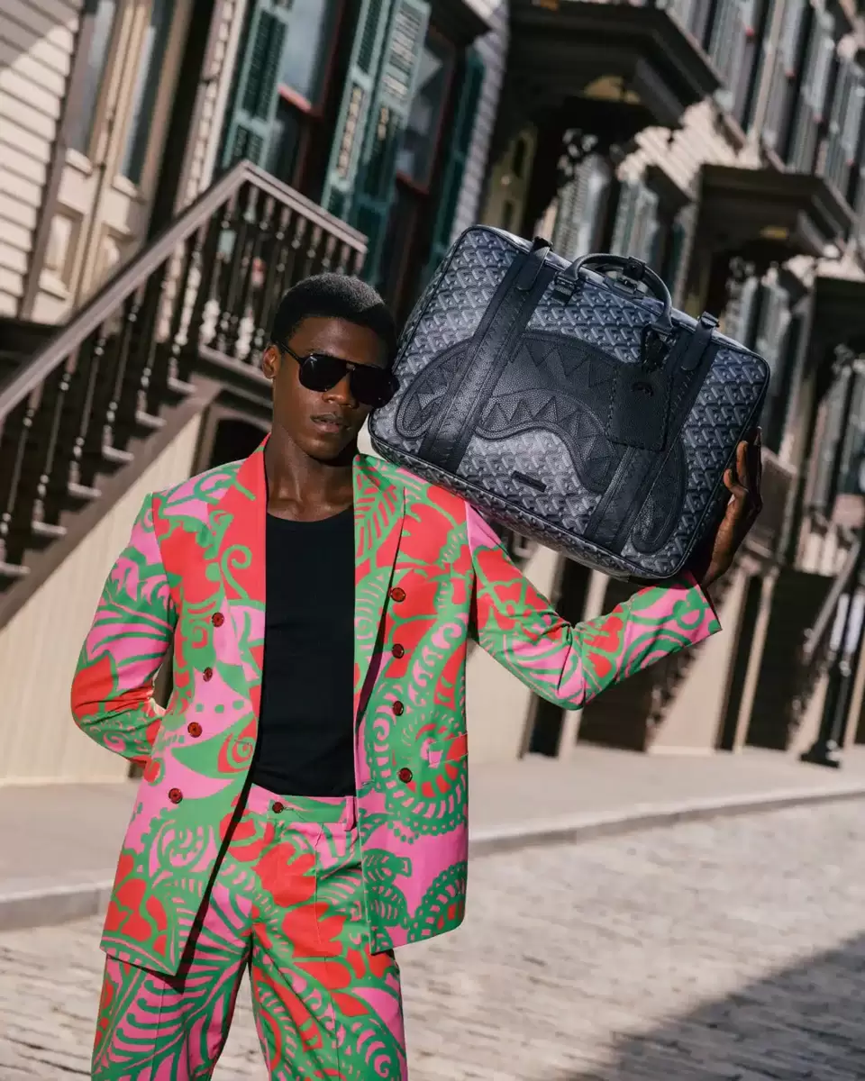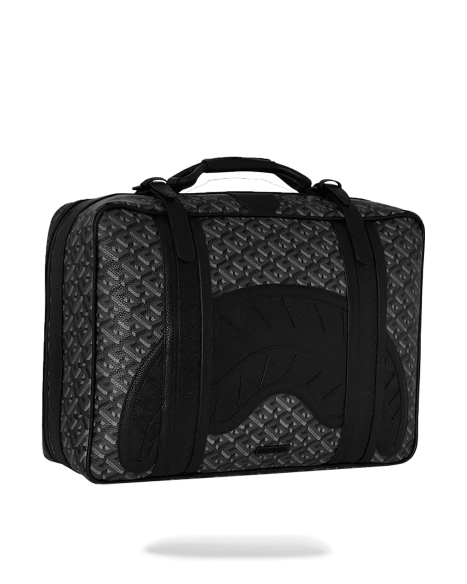 Features: Leather handle, secure buckle closure, whip stitching features, vertical sharkmouth embossed details, converts from backpack to handheld briefcase, embossed sharkmouth, includes luggage tag, 2 exterior zipper pockets, luggage sleeve, 4 interior mesh pockets, large interior pocket, clothing compression straps, includes adjustable backpack straps, embossed zipper pulls.