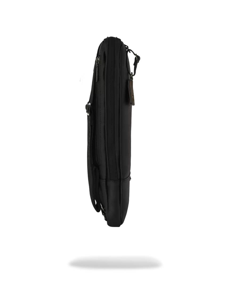 PVC bag with embossed details such as the sharkmouth, zipper pullers, and ID tag. Sewn faux leather details around the front zipper pocket and ID tag.