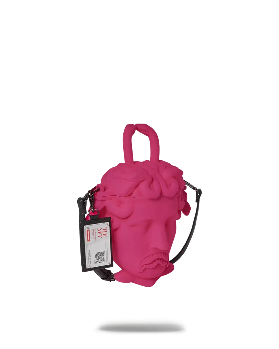 This head-turning handbag references Antonio Canova’s (Italian, 1757–1822) Perseus with the Head of Medusa (1804–6), a monumental sculpture in The Met collection. It celebrates the Greek hero Perseus’s victory over Medusa, the monstrous mythological Gorgon feared for her hair made of snakes and her deathly gaze that turned anyone she looked at to stone. Canova masterfully commemorates Perseus’s triumph over Medusa, whose likeness has long served as an image of evil to repel evil. The artist was universally acknowledged as the preeminent sculptor of his era, and his imposing masterwork in the Museum’s holdings closely reflects his admiration for the art of antiquity. This unique bag celebrates Canova’s creation with the addition of Sprayground’s signature shark mouth.