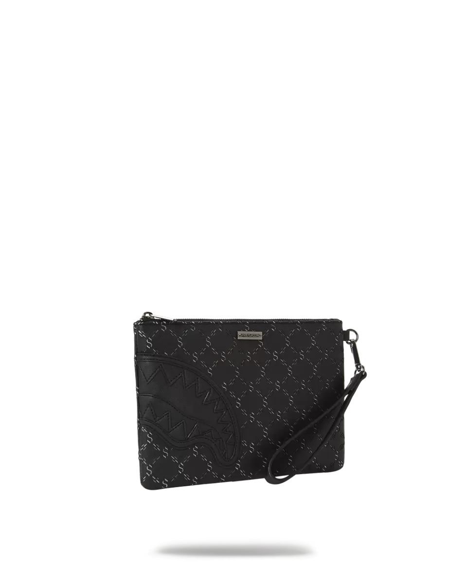 Pouch with removable wristlet strap, Handle on front panel, Zip Closure1 interior pocket7″ X 10″ X 0.25″