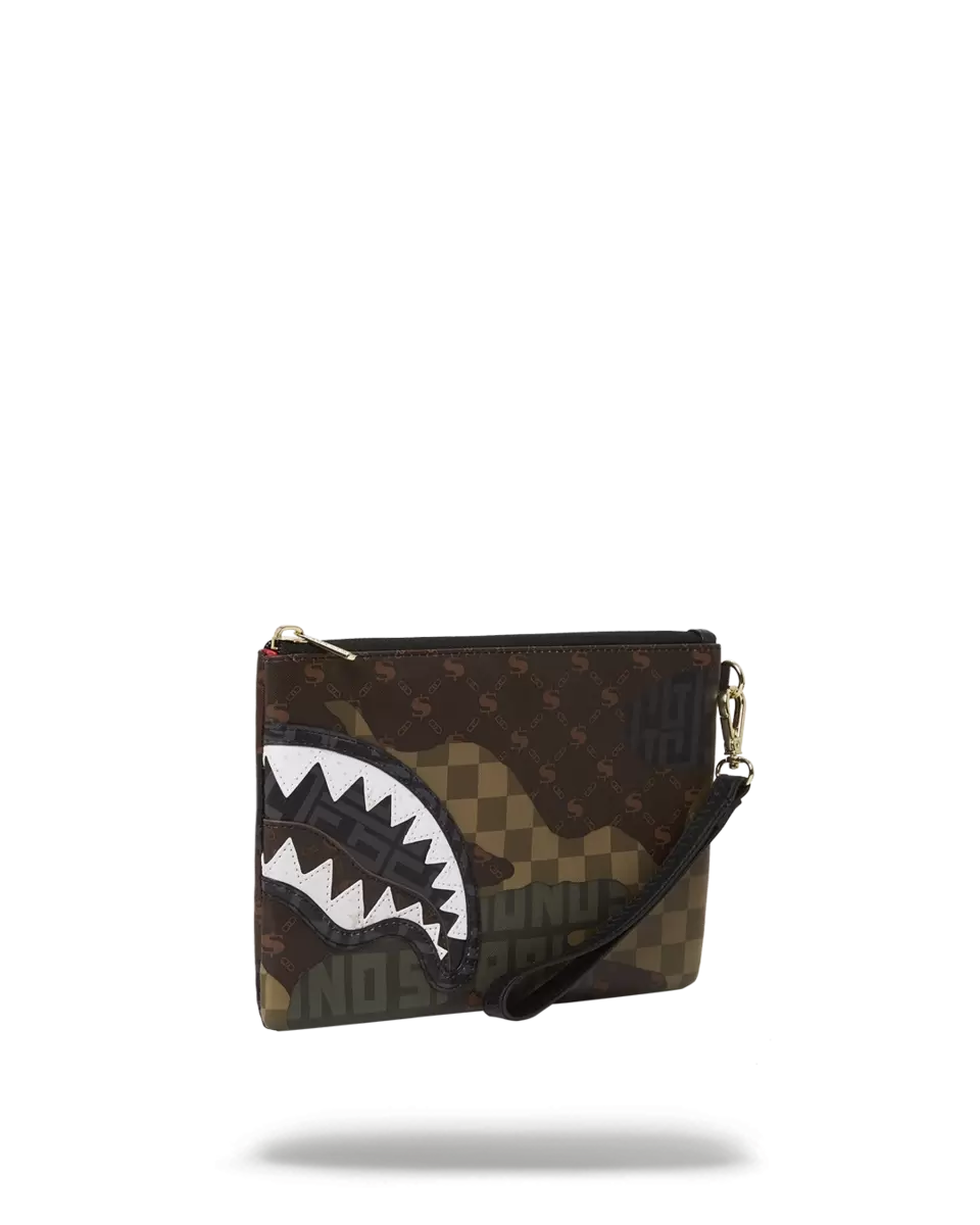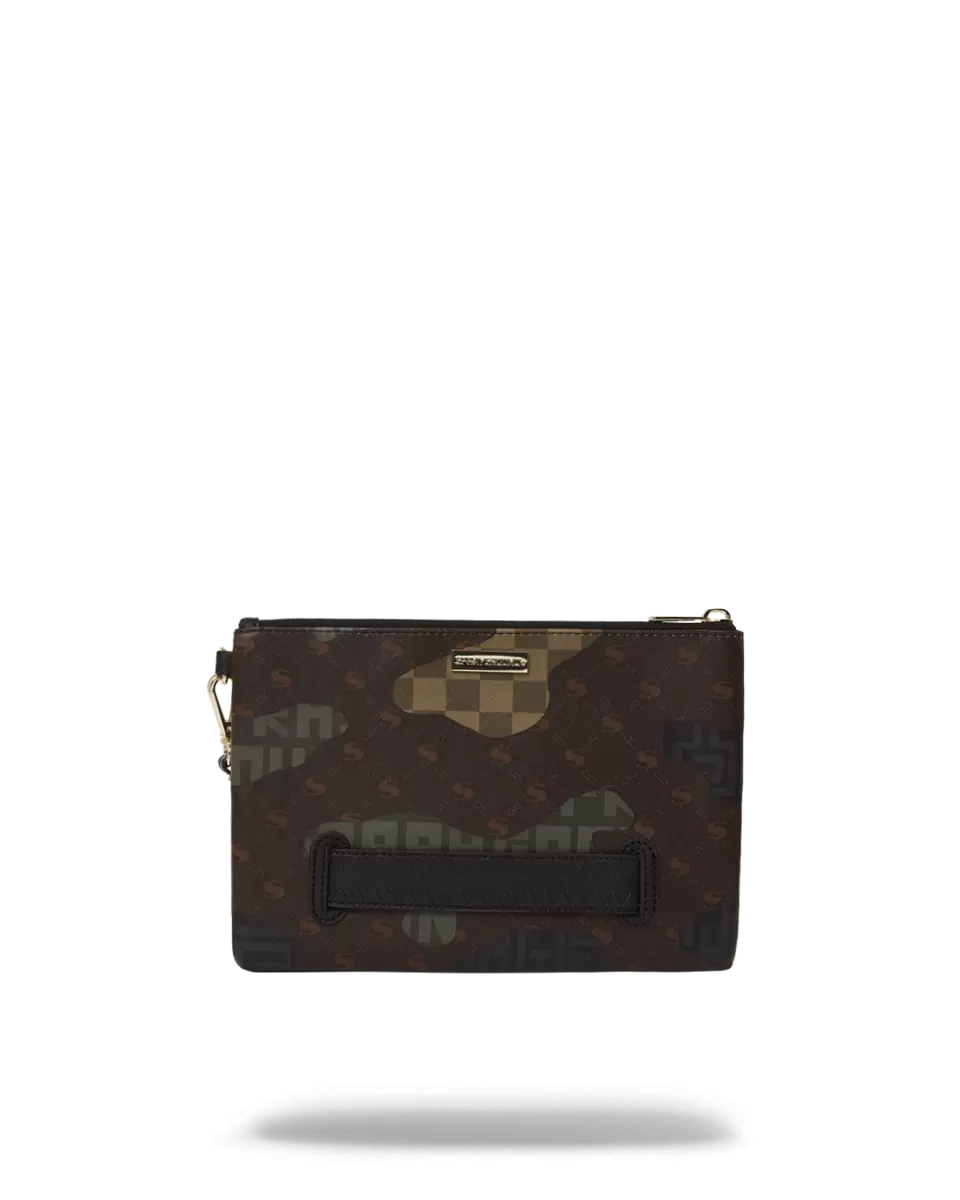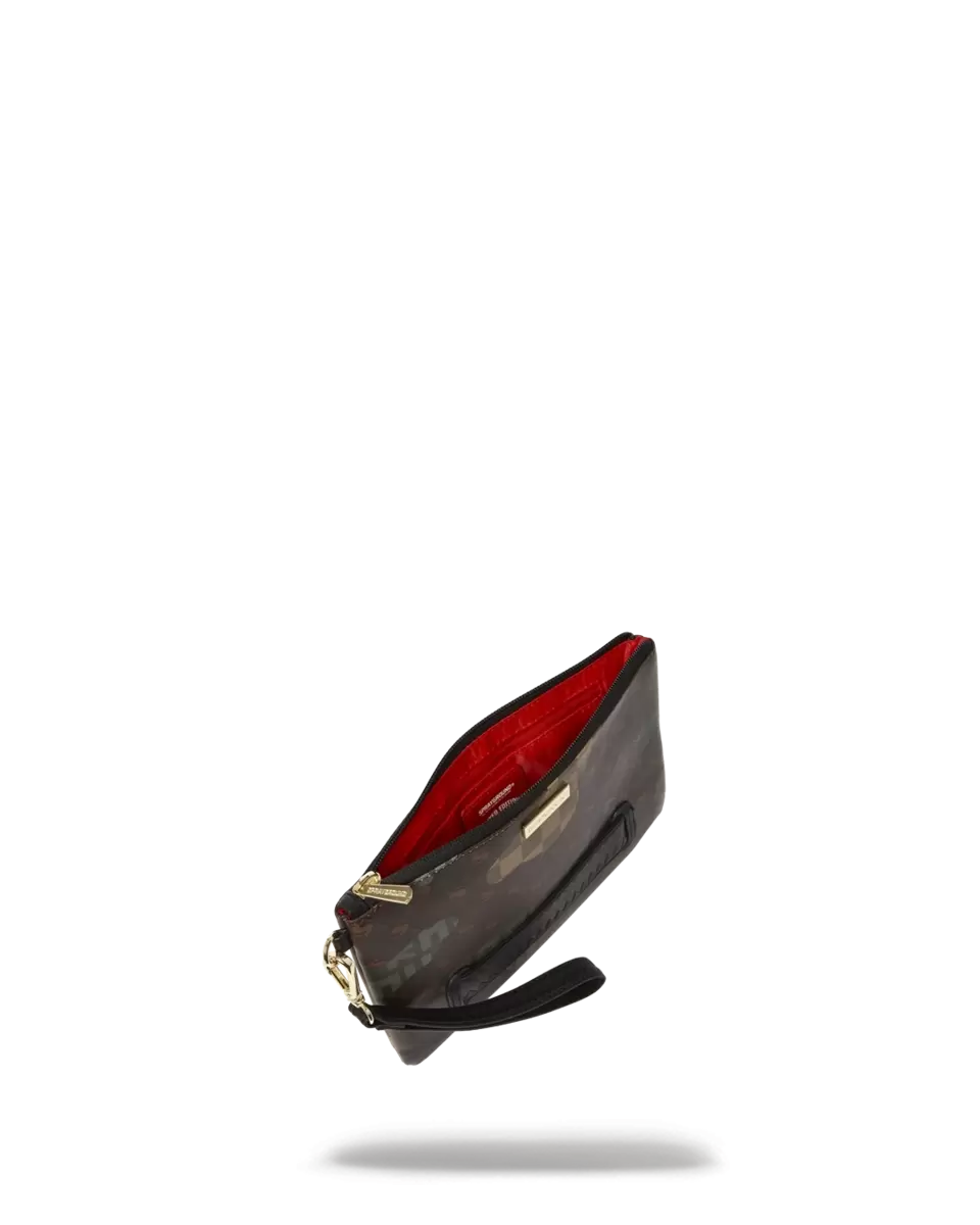 Pouch with removable wristlet strap, Handle on front panel, Zip Closure1 interior pocket7″ X 10″ X 0.25″