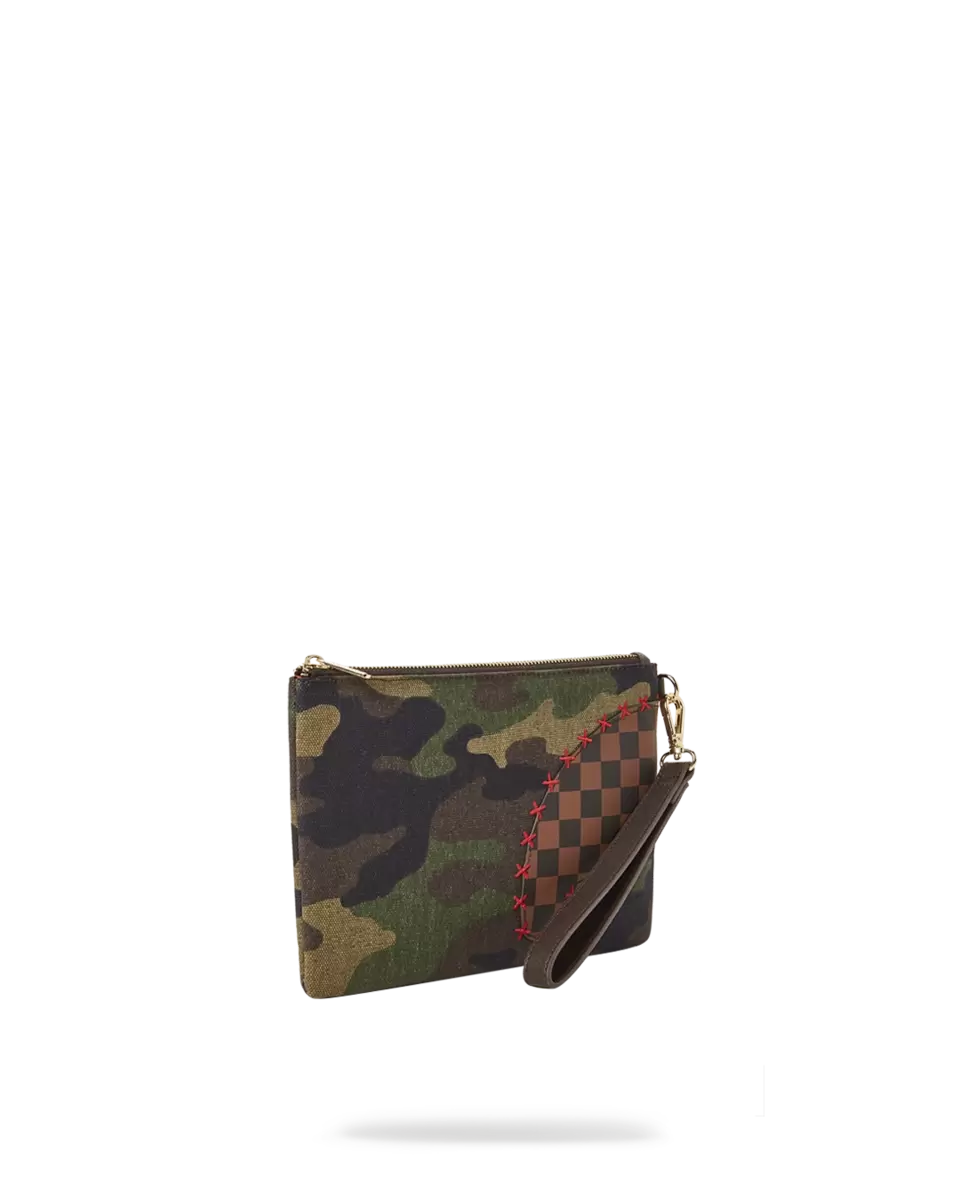 Pouch with removable wristlet strap, Handle on front panel, Zip Closure1 interior pocket7″ X 10″ X 0.25″