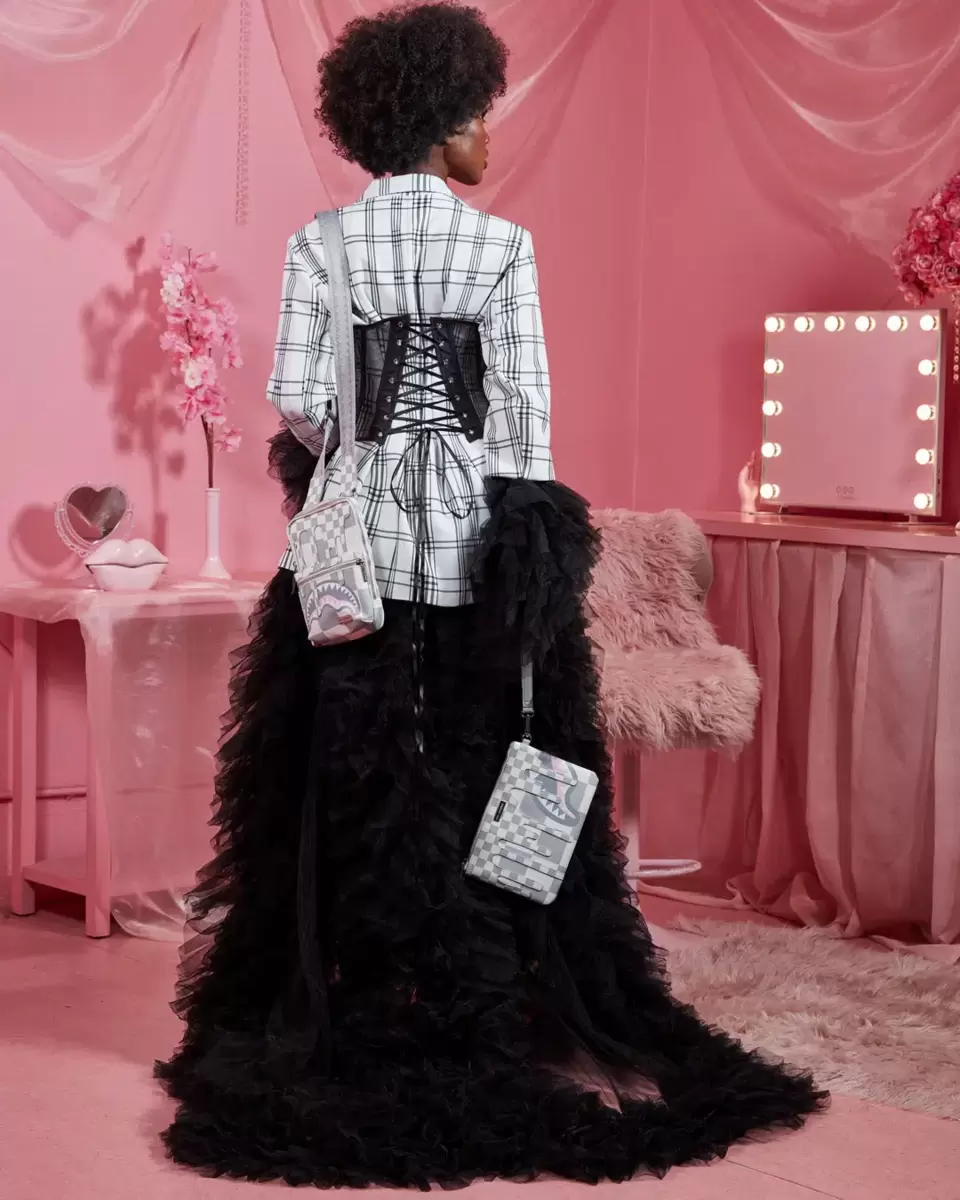 Pouch with removable wristlet strap, Handle on front panel, Zip Closure1 interior pocket7″ X 10″ X 0.25″