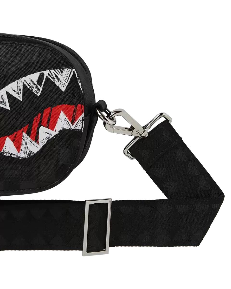 Size: H 8″ x W 5.5″ x D 3″2 Zippered Compartments Can be worn on back or on the front of the bodyAdjustable Vertical Shark Mouth webbing strap