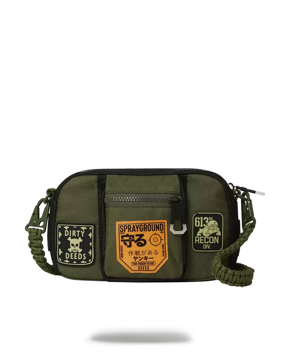 Interior zip pocket Adjustable cross-body strap Tactical Details Multi Functional Pockets Custom patches and buckles Durable Nylon Fabric