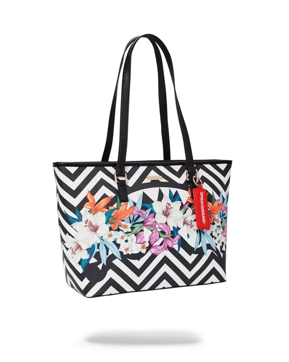 Your over the shoulder bag doesn’t have to be boring anymore. Stand out with the printed Sprayground Totes. Includes Sprayground Logo Keychain Mirror. Dimension