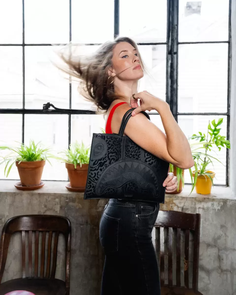 Dimensions 10 1/2, H x 14 3/8, W x 1/4, D Flocking cheetah print pattern, cut and sew details Interior Large interior organizer pocket Fabric Durable Faux Leath