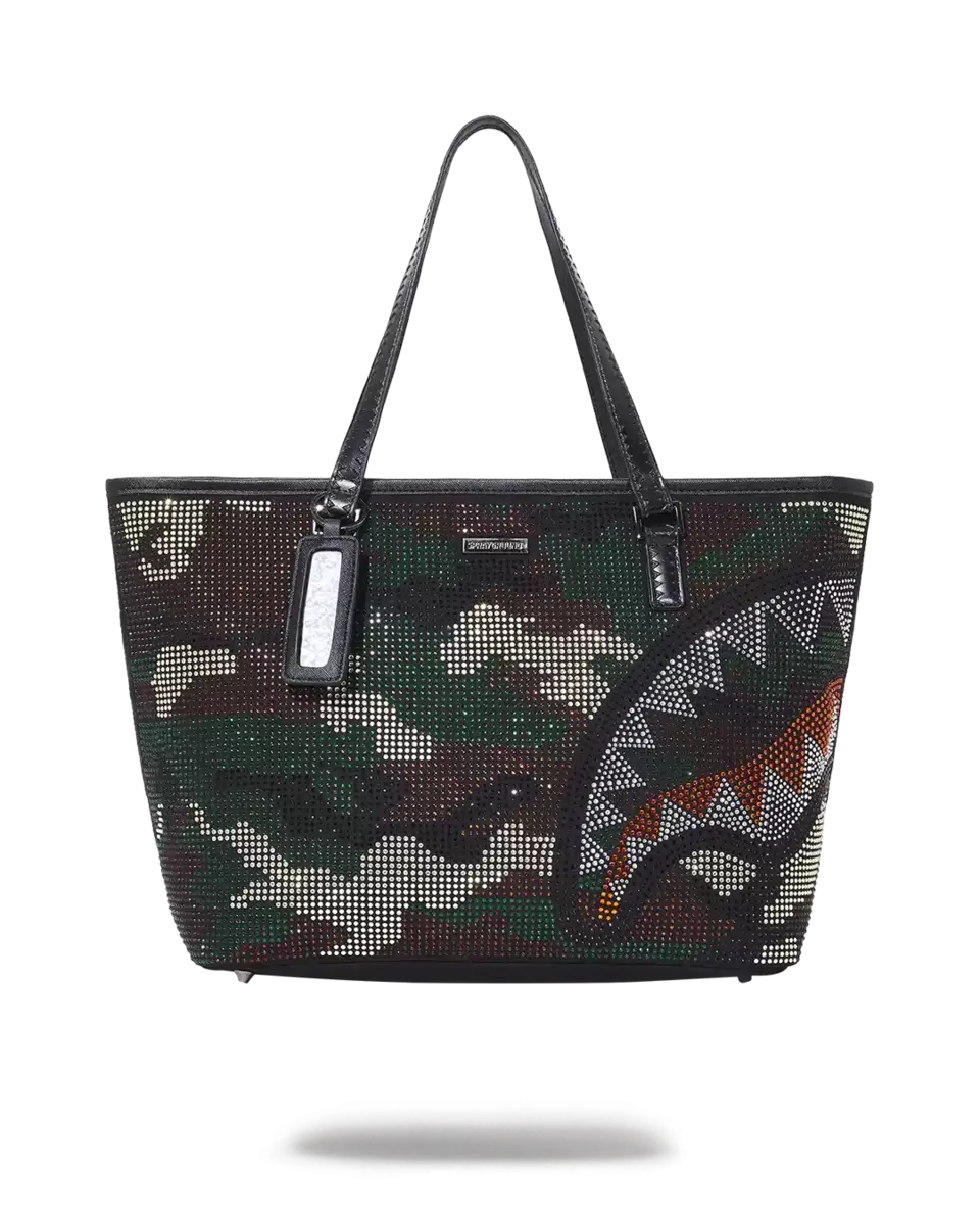 FABRIC 100% FAUX LEATHER CRYSTAL EMBELLISHMENT Exterior Dimensions 22, x 7, x 13.5, Top zipper opening, Top double handle, D-ring key clip, Zippers with me