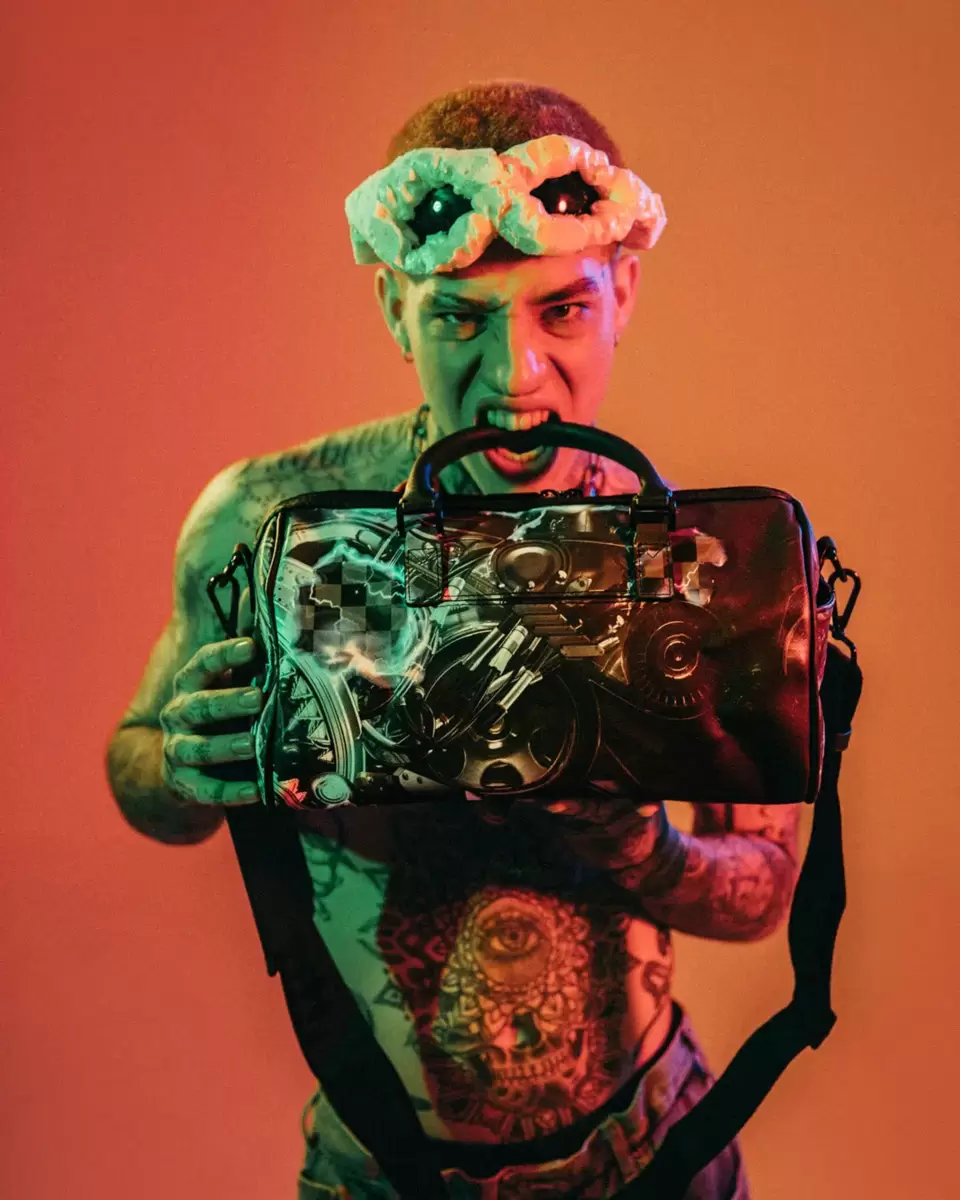 Dimensions: 8″ x 7.5″ x 13″ Metal zipper pocket Back Zippers Zippered sneaker pocket gold zippers Adjustable Straps for custom sizing Metal Zippers with Metal Hardware bag of Sprayground money